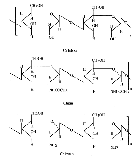 Figure 1: Chemical structure of cellulose, chitin and chitosan
